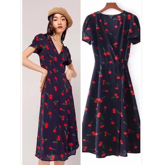 Product id: Cherry print wrap sales dress