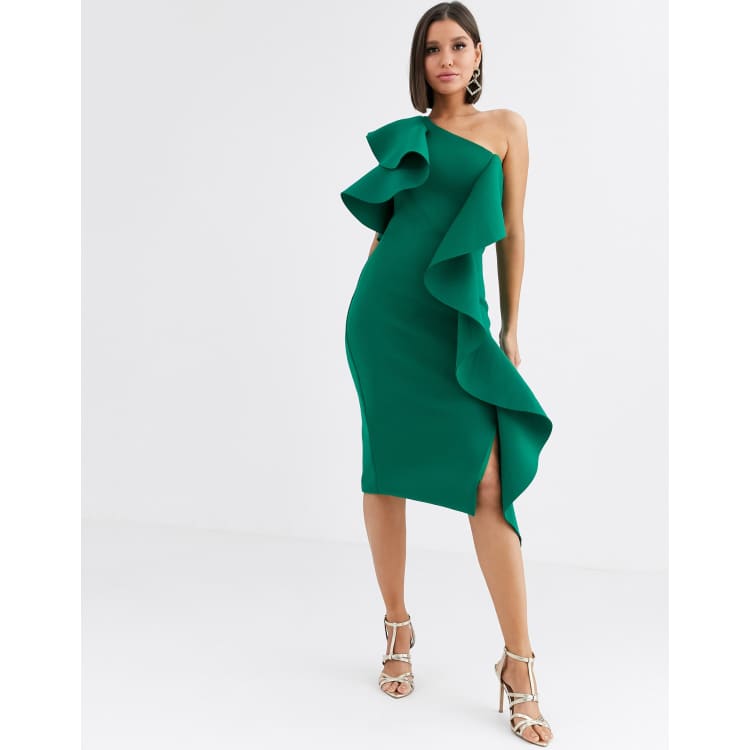 Product id: Green signature multi sales scuba frill midi dress