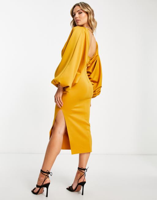 Product id: Mustard bodycon midi sales dress