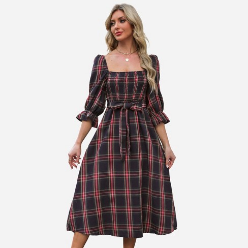 Product id: Tartan square neck sales dress