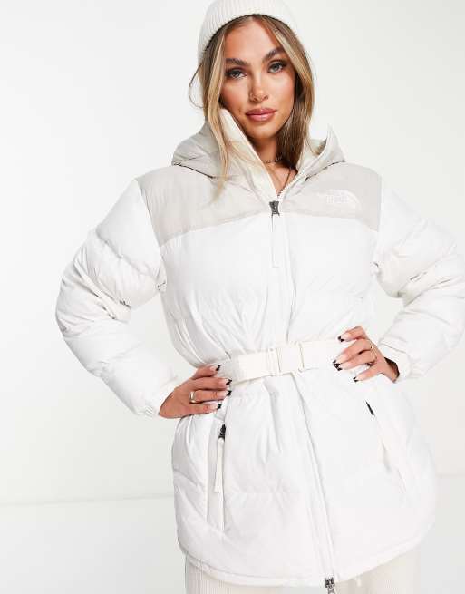 Product id: White belted puffer sales coat