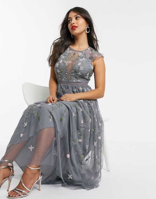 Product id: Asos design pretty embroidered floral and sequin sales mesh maxi dress